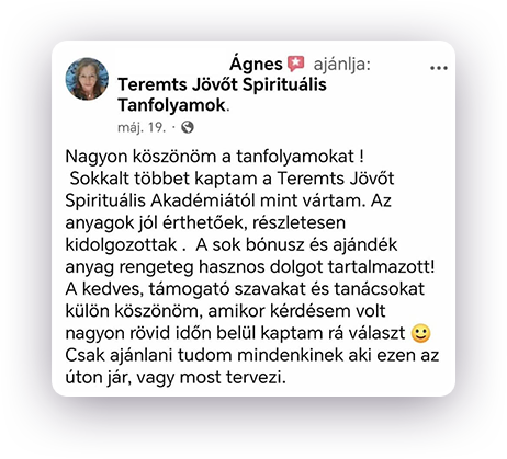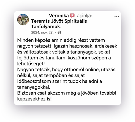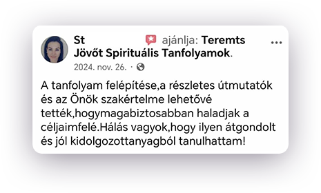 A tanfolyam elvégzése után Felnőttképzési Tanúsítványt is igényelhetsz, amellyel akár segítő vállalkozást is indíthatsz.